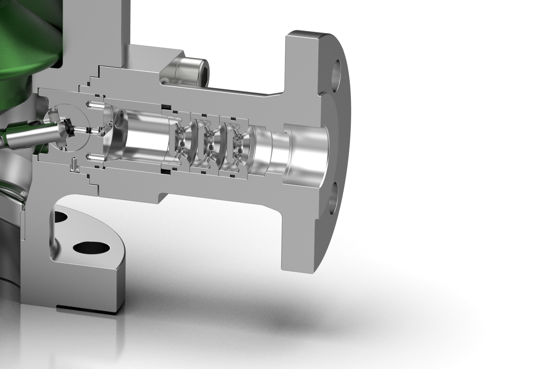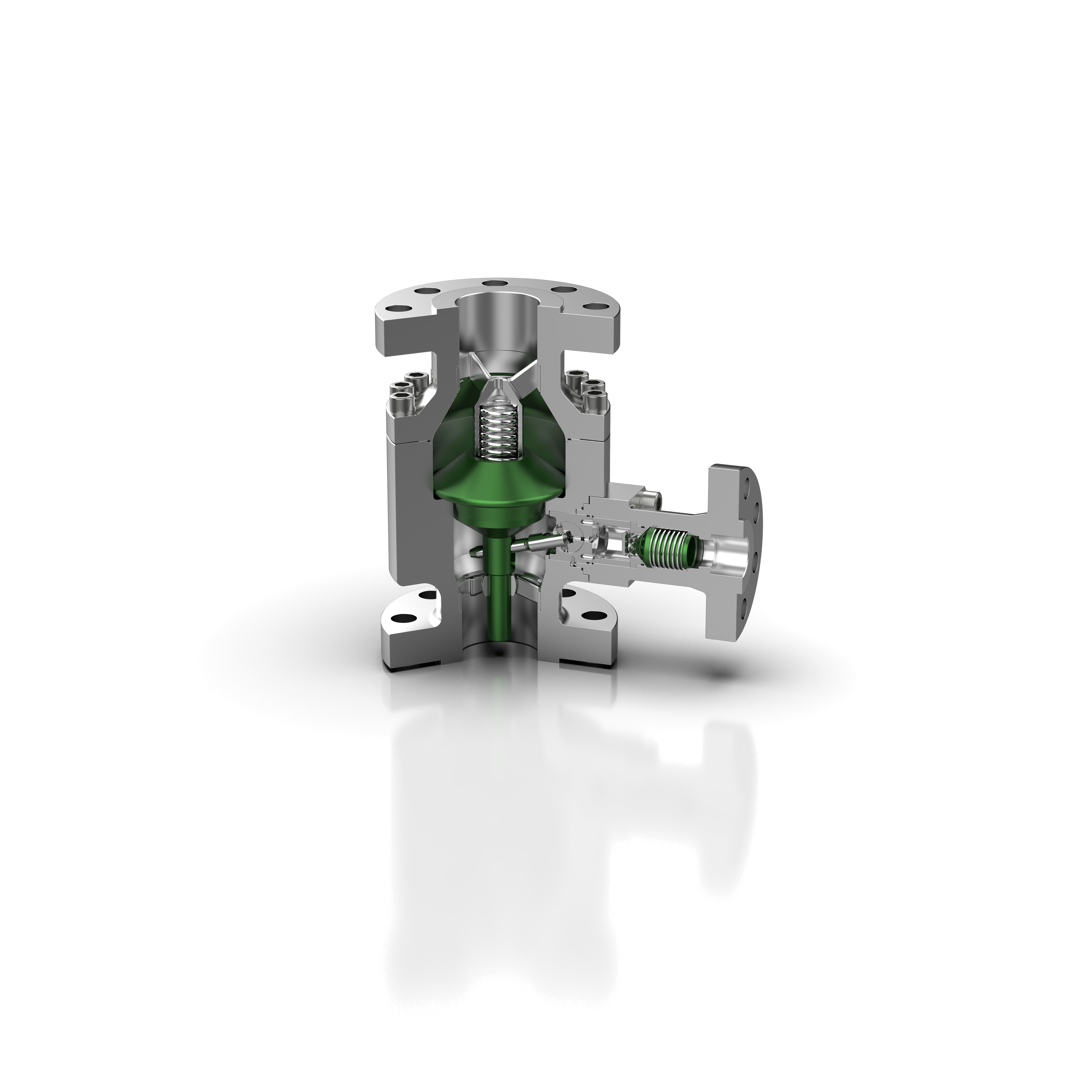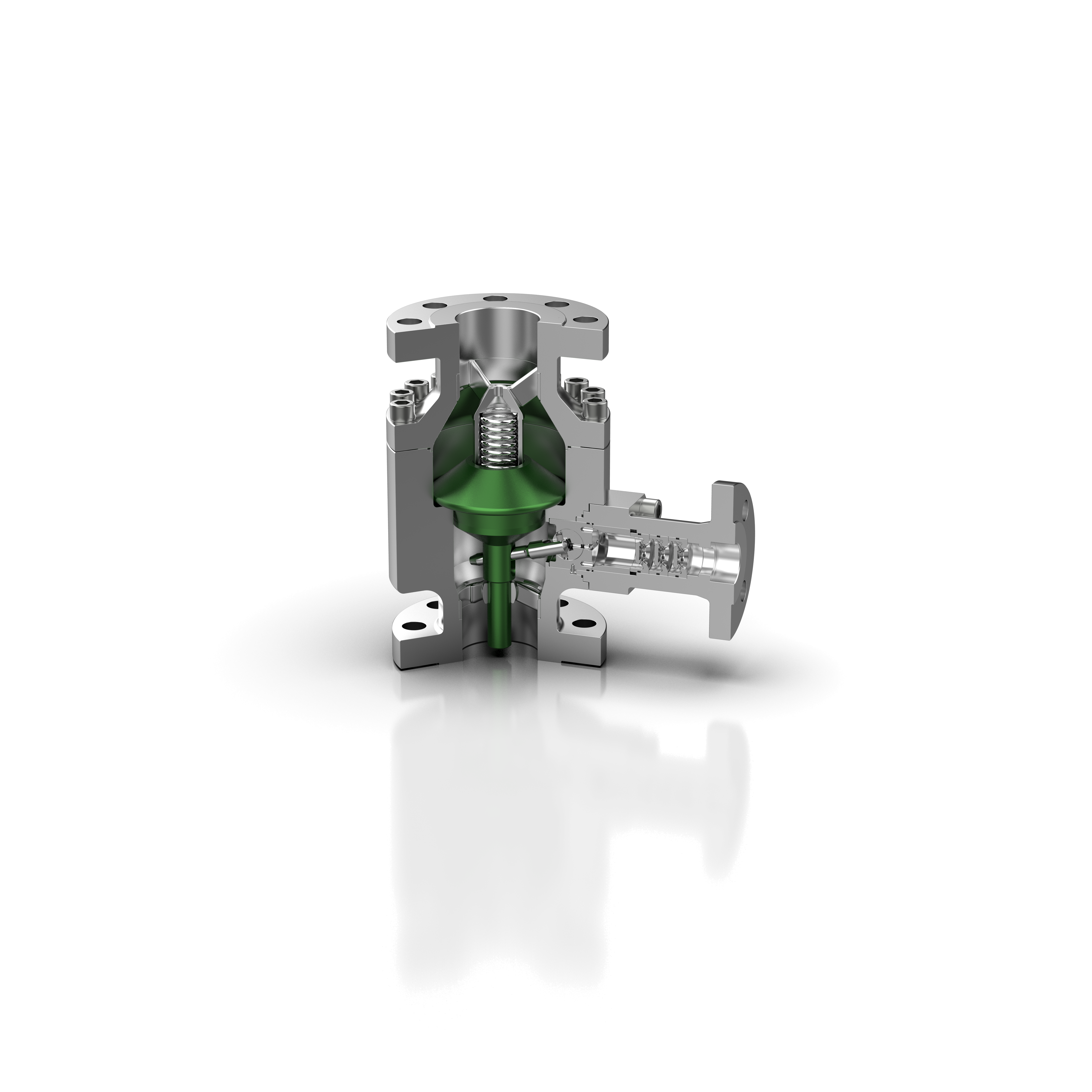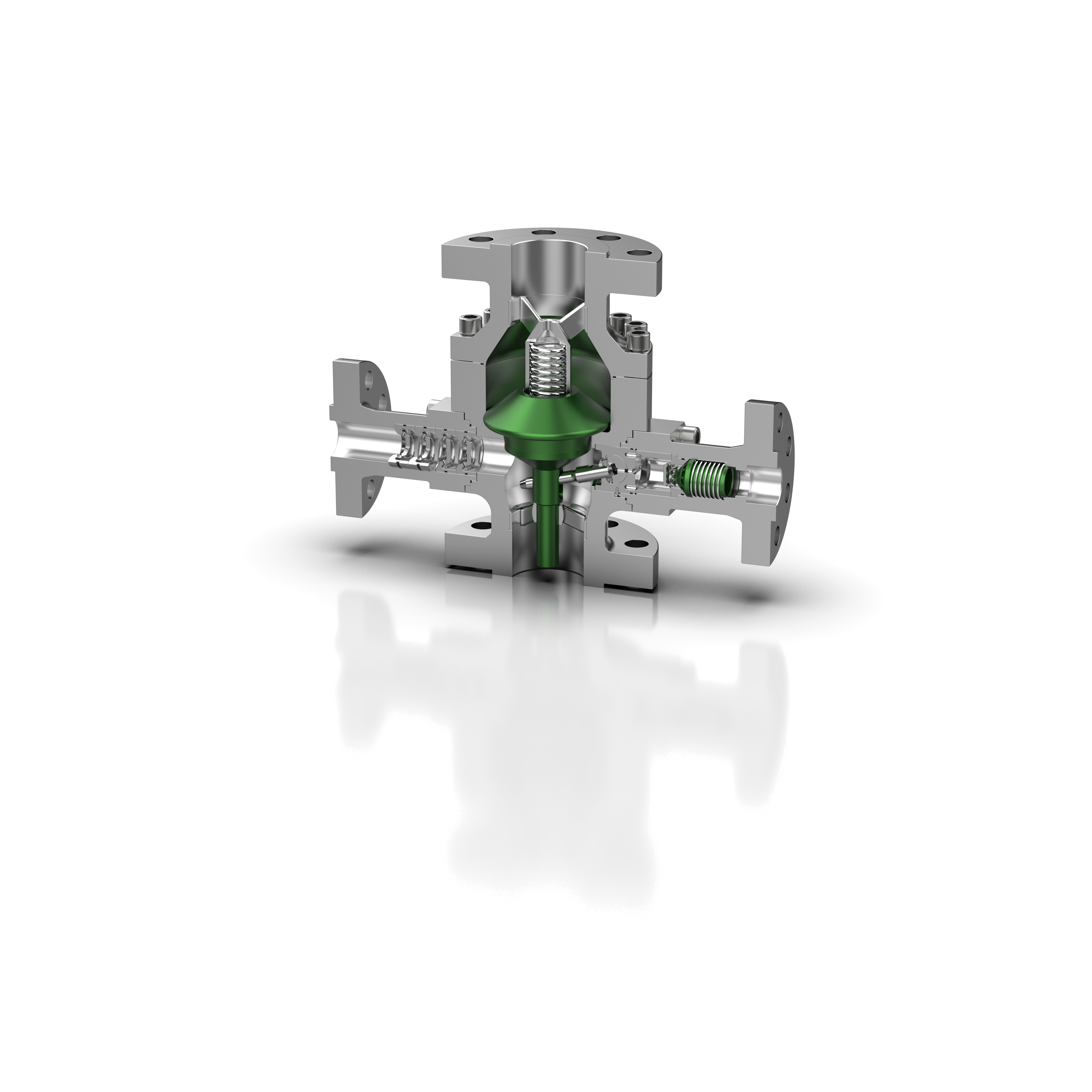 当流量达到最大值时,圆锥到达最高位置,阀门旁路完全关闭。