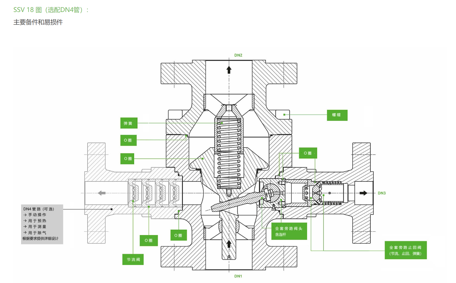 SSV系列自动循环阀由流量控制圆锥并带动连杆动作开关旁路,